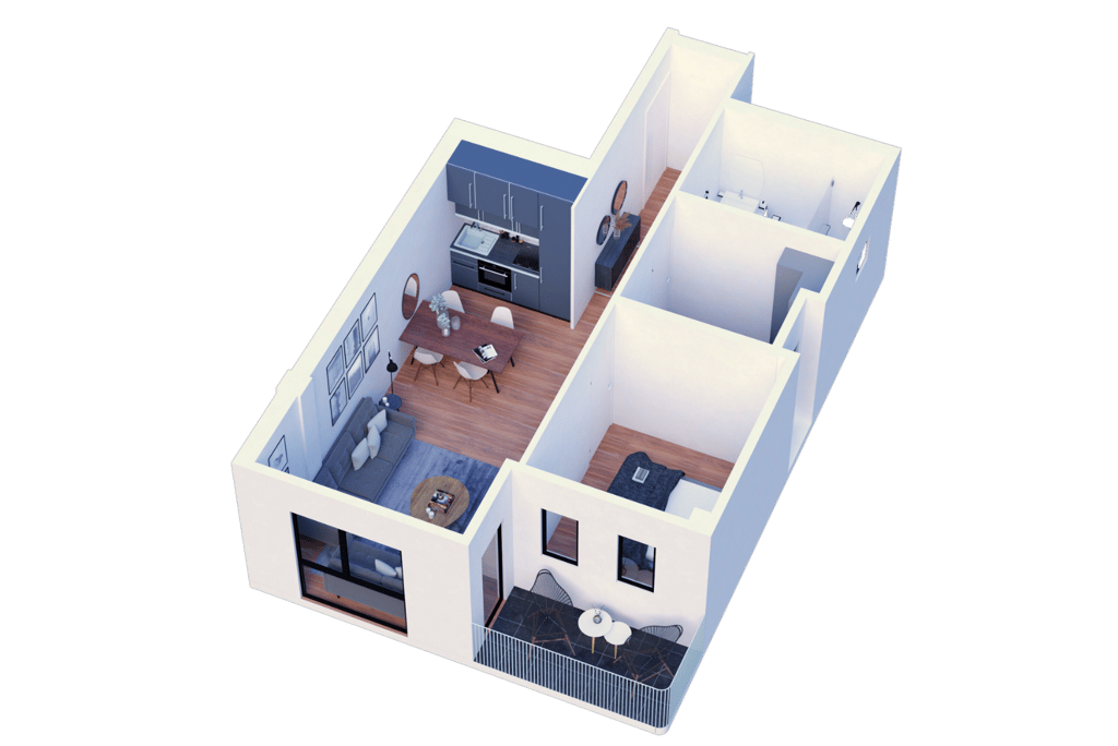 Добро дизајнирани спални соби: Вклучува 7 квадратни метри прва соба и 10 квадратни метри втора соба.